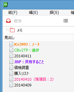 「重要度」情報がつけられたファイルはファイル名一覧部分での文字色・文字サイズが変化しますので、ファイルを開いて内容を確認しなくても、どれが重要なファイルなのかが一目で判断できます。