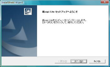 「紙copi Lite」のセットアップ画面が表示されたら、[次へ]ボタンをクリックしてください。