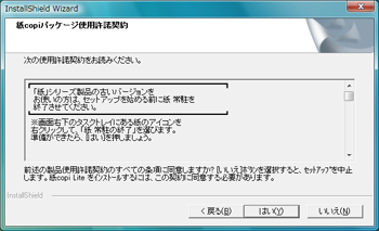 使用許諾契約書が表示されますので、よく内容を確認してから[はい]ボタンをクリックしてください。